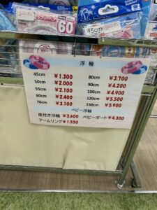うちは80センチの浮き輪と、娘用にアームリングを買ったんですけどネットで買うとめちゃくちゃ安い。泣泣