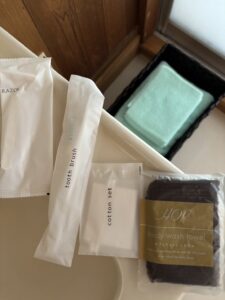 剃刀、歯ブラシ、コットン綿棒、ボディタオル。