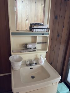 洗面台は小さめで少し古そうなタイプですが特に問題なし。ドライヤーも普通に使えました。