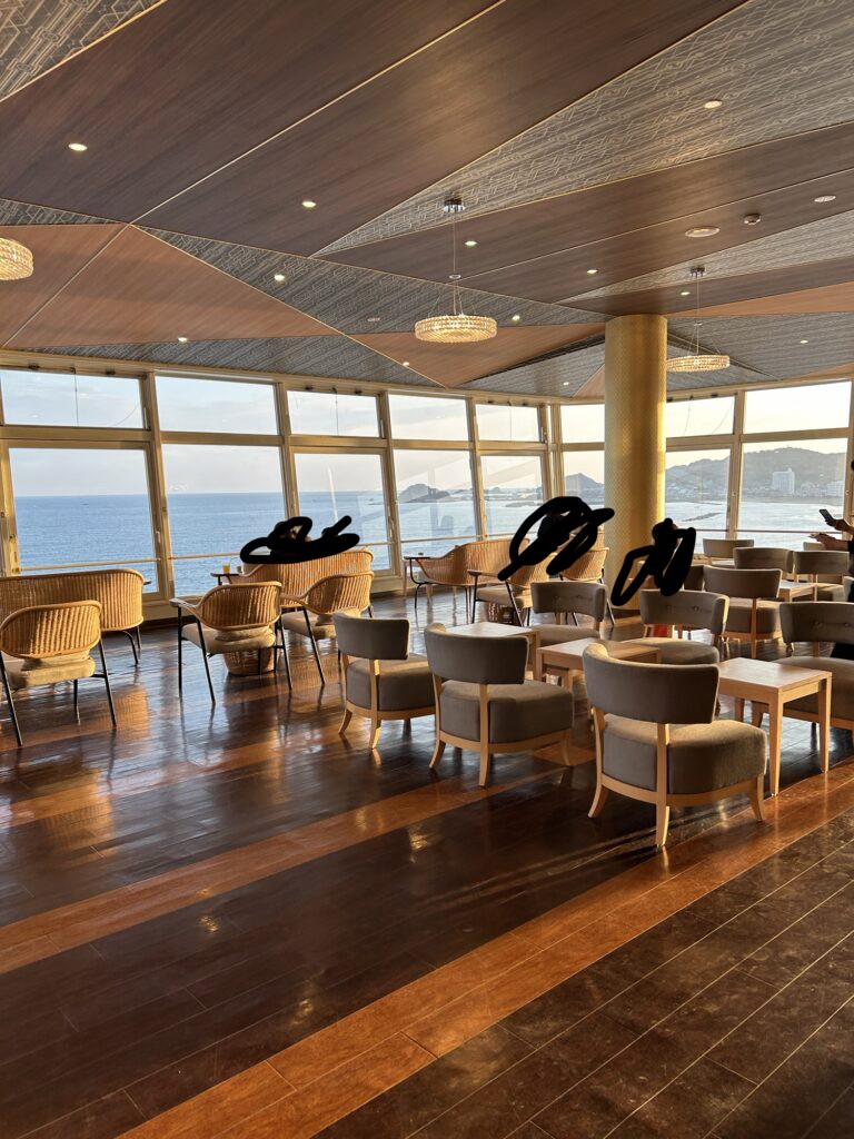 個人的にはもう少し時間が長いといいなぁと思いました。夜ご飯後に少し飲めるとか、コーヒーだけは24時間OKとか。最近オールインクルーシブの宿によく泊まっていたのでその後遺症なのかちょっと残念ラウンジ。