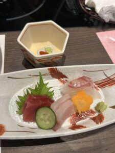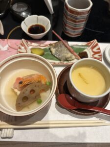 写真あまり撮らなかったんですけど、最初に載ってる写真は芙蓉の先付です。こちらも芙蓉のお刺身と前菜の何か。